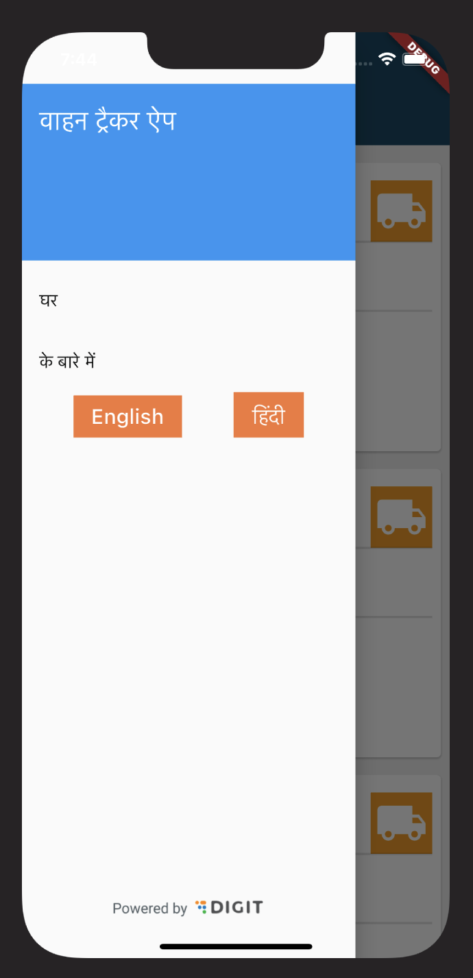 For i18n, I have only added some general texts in Hindi. The rest of the texts will be added later on after the approval from my mentor. Here are some screenshots of the app in English and Hindi: