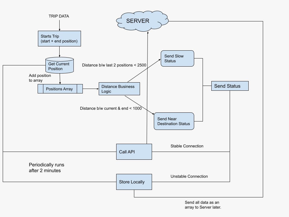 The Vehicle Tracking is one of the main feature of the app. It will help the user to track the vehicle to monitor illegal activities. Currently, the feature is in the development phase and will be completed in the next week. As of now I have only developed some of it and have tested it out with an android emulator by mimicking the location. Here is a flow diagram of the feature: